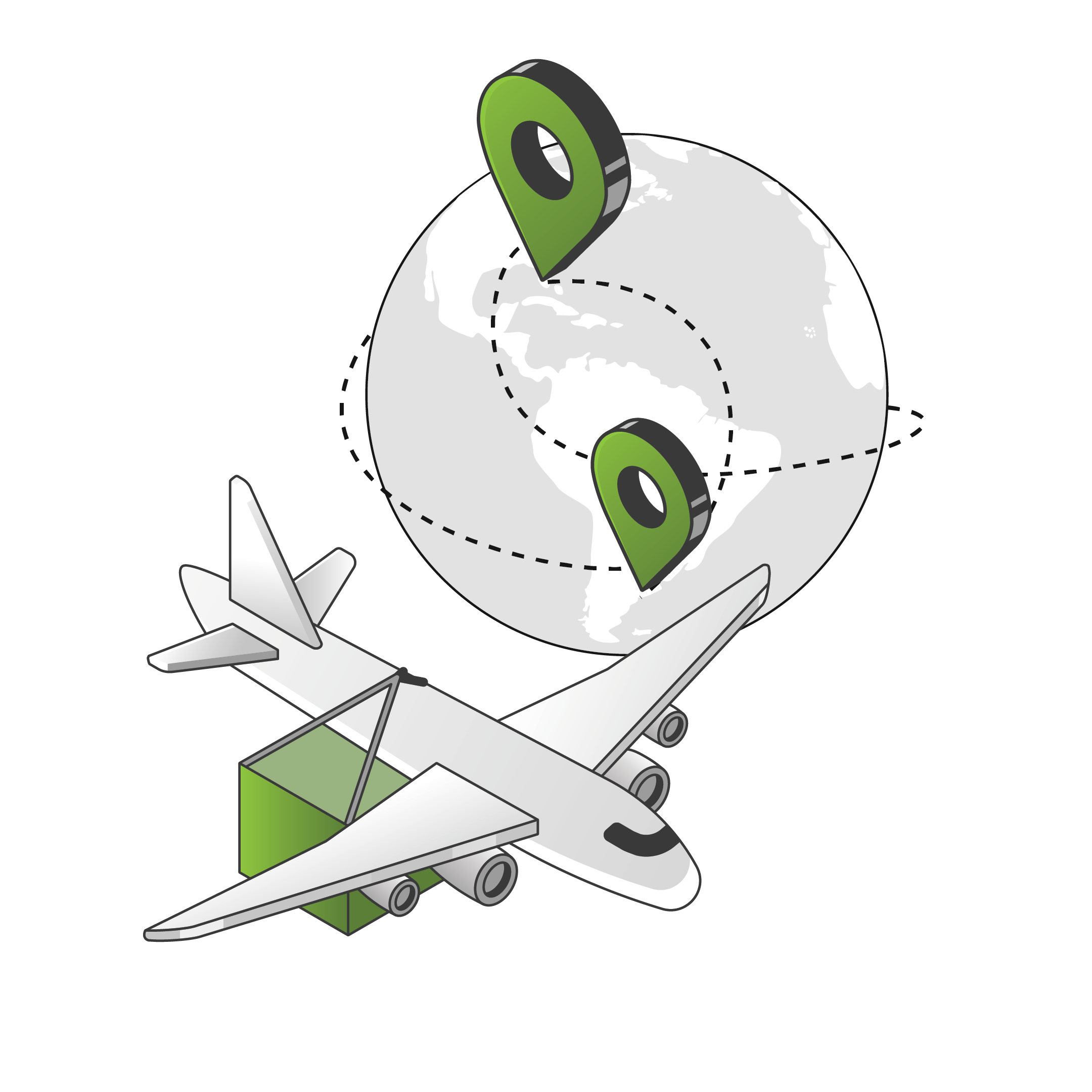 Transporte terreste, marítimo y aéreo con alcance global.